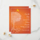 En ordnad återgivning av ett Livets träd dominerar framsidan av denna färgstarka Bat mitzvah Spara datuminbjudan. Träd är avklippt från inbjudan på den lämnat sidan och har löv som faller från den. En skarp gult fågel har tagit flyget över inbjudan överst. Anpassad spara datumtexten som skrivs ut på högerna mot bakgrund av den vibrerande orangen. I motsatt riktning upprepas träd som en mindre ikon med den Bat mitzvah flickans utskrift namn nedan tillsammans med datumet för händelsen. Tillgängligt med matchande produkter.