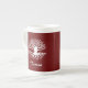 Den här designen har ett vitt livets träd, med djupa rötter, silhuverterat mot en burgundär bakgrund. Din monogrammade namn eller initialer visas i vitt skript nedan. Träd och ditt monogram visas på båda sidor om kopp. Livets träd är en arketyp i många av mytologierna, religionerna, filosofiska traditioner och helig.
