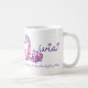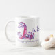 Hand plockade brev L namn och mugg. Söt hjärta och blomskapital L doodlad typografisk design med hjärtan och blommor och ord Lívia Worthy of avvy. En vacker fullt av livskraft för rosa och lila. © Unik konst och design av Sarah Trett. www.sarahtrett.com för www.mylittleeden.com på zazzle