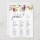 Elegant bröllopsspelskort matchar vår Livlig Blomning bröllopsfest kollektion och har vattenfärg blomsterkanter i frodiga juveltoner. Tvåsidigt kort låter dig få två spel i ett! Framsidan har Bröllopbingo, med Vad har du i handväskan. Personifiera med brudens namn och datum för festen.