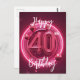 Livlig Chic Neon Rosa 40-årsdag Vykort