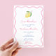 En livlig lemonbaby shower-inbjudan med en boho-vågig kant och en nedtonad estetik.