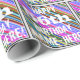 Detta roliga födelsedagstematiska presentpapper har ett meddelande som "GRATTIS NAME-HERE PÅ 56-ÅRSDAGEN!", där namnet kan anpassas. Bakgrunden har ett livfullt, flerfärgat randigt mönster. Meddelandetexten är vit och har ett slitstarkt utseende. Presentpapper som detta kan kanske användas när man slår in presenter som ges till någon som firar sin femtiosjätte födelsedag.