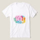 Fira färgfestivalen med denna fantastiska, energiska design. Med en djärv "Holi"-stilskrift mot en explosiv stöt av elektrisk blå, magenta och elddorange pulver, fångar denna t-shirt andan av glädje och förnyelse. Perfekt för Holi-fester, evenemang eller för att lägga till en touch av konstnärlig flärd till din vardagsklädsel.