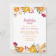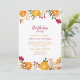 Varmt skimrande guld, orange och vinrött skapar de övre och nedre ramarna på denna blomstermönstrade inbjudan. <a href='http://www.freepik.com/free-vector/background-of-autumnal-flowers_916397.htm'>Designad av Freepik</a>