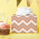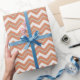 Ett upprepande orange och vitt sicksack-chevronmönster fyller bilden och skapar en djärv, rytmisk design med en retro- och energisk känsla.