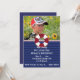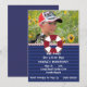 Röd och blå seglingstema födelsedagsinbjudan med en röd-vit livräddarring och en fotomall.