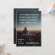 I slutet av sitt livs arbete ensam man sitta i berget som motiv för ett sörjande- och kondoleanskort och tillbehör till modern färg-design med vitt typsnitt. Texter, datum och namn kan anpassas.