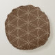 Rund kudde med stort mönster av livets blomma. Denna eleganta design i beige och bruna färger tillhör den heliga geometrin. Livsblommans mönster tros ge läkning och harmoni. Varje skärningspunkt mellan cirklar bildar Davidsstjärnan.