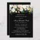 En elegant komposition av vita rosor är nästlad i mörkgröna och gyllene blad. Vit text framträder på en svart bakgrund. Den avlidnes namn är skrivet i en traditionell skrivstil. All text kan enkelt redigeras för att skapa en personlig minnesstund.