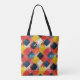 Iögonfallande tote med ett livfullt abstrakt geometriskt mönster med röda, gula och blå diamanter. Perfekt för moderna stilentusiaster och de som älskar djärva, färgglada designs. Denna tote är idealisk för daglig användning, shopping eller som en unik present. Uttryck din konstnärliga sida med denna dynamiska design som kombinerar djärva former och slående färger.