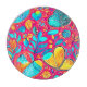 En fängslande abstrakt konstverk med livfulla blomsterdetaljer och lekfulla hjärtan på en djärv rosa bakgrund. Det här verket är en explosion av färg och energi (Denna design är gjord med AI). Beställ idag och omfamna glädjen av att handla!