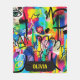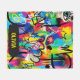 Denna färgrika, personliga filt har en högenergisk abstrakt konstkomposition som kombinerar djärva färger, droppande färg, klottrade linjer och element av graffiti och popkonst.