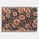 Livslevande blommönster med stora, stiliserade persikofärgade blommor mot en mörk bakgrund. Blommorna är detaljerade med rika texturer och intrikata mönster, åtföljda av frodiga gröna och guldtonade blad som förstärker kompositionens övergripande elegans.