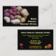Detta fantastiska affärskort är att marknadsföra en ekologisk livsmedelsbutik i livsmedel. På framsidan finns det mycket färglös ekologisk potatis som just skördats och redo att äta, i färg av rött, lila, rosa, gult, brun och vit. Varje potatis har sin egen unika form. På baksidan finns päron, blommor och det mesta av den relevanta texten. All text kan anpassas för ditt speciella företag.