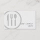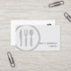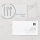 I det här affärskortet för matsalar och service finns en stor, vågad, halvgenomskinlig, svart ikon för bestick på den lämnat sidan av kortet. Bakgrunden är en sotning av pappra struktur, där ditt namn och din titel visas på ett enkelt sätt att läsa svart brev på den nedre högerna. Din övriga kontaktinformation visas på kortets baksida. Perfekt för mat, service, restaurang, vatten, matlagning, gästfrihet, professionell.