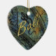 Hjärtformad keramisk ornament med en bild på båda sidor av geometrisk grönt, blå, svart och guld batik med en symbolisk symbol, en typ av ödla som är framträdande på Bali. "Bali" skrivs ut på framsidan i skript för guld. Visa hela uppsättningen för återupprepning av ornament i SPECIELLA TUUCHES | Avsnittet Party favors. Den här produkten är inte associerad med eller ansluten till den ursprungliga upphovsrättsinnehavaren.