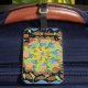 This fantastic, useful luggage tag, features my painting of a brightly coloured circle of lizards in a mandala design, drinking from a desert watering hole, against an abstract design. An unusual gift perfect for a lizard lover. Ideal to keep your case visible and a colourful accessory.