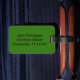 En silhuett av en ödla visar sig genom en ljus grönt löv. På baksidan finns anpassade för ytterligare identifiering.