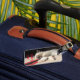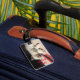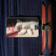 Denna märkre för akryl- identitet för bagage, förpackning eller till och med väska är sport en admatesisk katt som sover i solljus på ena sidan och en mall för din viktiga information på den andra sidan. Photo ©Patricia AZ Phillips.