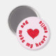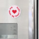 Äkta kärlek handlar om romantik och lycka, och att vara tillsammans. Ett stort rött leende hjärta illustrerar citatet på magneten "Du får mitt hjärta att le". Två par mindre röda hjärtan och mjuk bakgrund i rosan kompletterar utformningen