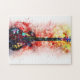 Gitarr mot en bakgrund av mång--färgade fläckar