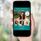 Skapa din egen unika fotokollage. Använda fyra, fyra av dina favoritfoton. Anpassa och lägg till information om namn och party. En färgad, gröntens bakgrund, vit text.