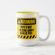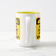 Tvåtonskaffe mugg som är speciellt tillverkat för alla gris och fläkt som äger marinerna och som är coola. Drick kaffet medan du visar världen hur mycket du tycker om att prata om de söta små husdjuren. Det visningar utformningen på båda sidor om mugg, som består av en varningsikon, svart diagonalt rand och citatet "kan börja prata om marint grisar" i versaler sans serif black font on a gult bakgrund.