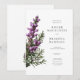 En originell digital illustration av lila ljungblommor i stil med vintage botaniska skisser finns med på denna inbjudan.