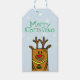 Lustigt ren julklapp märkre för helgdag till barn. Anpassa märkrn med texten och anteckningen. Märkrn har en rolig renare teckning - hjort med rött näsa och en liten klocka. Baksidan är blek blå med vackert vitt snöflingor i olika storlekar och former. Gör din julklapp speciell med den här roliga och söta helgdag märkre. Barnen kommer att kärlek den.