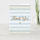 Vikbar tackkort med vita och blå ränder och falskt konfetti glitter. Fyll i temat med matchande inbjudan, skyltar, dekorationer och mer från min Ljus blå och guld samling.