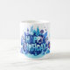 Den här glada födelsedagsmuggen exploderar av firande. Kraftig HAPPY BIRTHDAY-text i lager på lager av blå nyanser tar centerplatsen, omgiven av lekfulla abstrakta blad, kronblad och geometriska accenter som känns festliga utan att vara överväldigande. Det krispiga vita keramiken får färgerna att poppa fram, vilket ger hela designen en ljus, modern och partyklar känsla. Det är den sortens mugg som direkt känns som en present – glad, uppiggande och perfekt för att starta någon annans speciella dag med ett leende.
