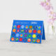 Fira dina kära födelsedag eller speciella tillställningar med den här klara, färgstarka och öga-fångstdesignen. Avbildning av ballonger, stjärnor och muffinsar som sätts på färgader med vibrerande ljus och ställs in mot en bländande blå bakgrund. Texten är vit och kan anpassas till valfri ålder, namn och tillfälle.
