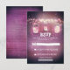 lila OSA kort för landsbyggsbröllop av vintage med Mason burk och strängar av ljus. Utformningen består av rustik bakgrund, gnistrande nattetid, ljus och hängande mason burk. Kontakta mig om du behöver hjälp med anpassning eller om du behöver hjälp med en begäran från anpassningsbar färg.