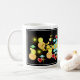 Skämt dekorerad mugg i ljust och levande färg med bubblor och hjärtan och strålar för att avsluta dagen på bästa humör