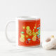 Skämt dekorerad mugg i ljust och levande färg med bubblor och hjärtan och strålar ljus för att starta dagen på bästa humör