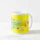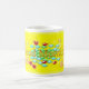 Skämt dekorerad mugg i ljust och levande färg med bubblor och hjärtan och strålar ljus för att starta dagen på bästa humör
