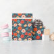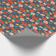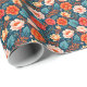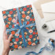 Korallröd, rosafärgad och himmelblå blommor på en midnattsblå bakgrund gör ett ljust och vackert presentpapper för alla tillfällen.