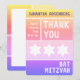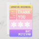 Klara färger. En ren och enkel design. Stor stil. Davidstjärnan... framträdande visad i en rad. Detta moderna och unika Bat Mitzvah tack-kort har en kompletterande palett med varje sektion definierad av en unik bakgrundsfärg. All tryckt information kan anpassas med din dotters namn…fyll bara i fälten!
