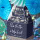 Elegant bröllop-förmånslåda med söt string ljus, chic namnteckning skript namn och speciellt datum på marin blå bakgrund. Du kan anpassa dig med ditt eget tack till ditt meddelande på motsatt sida. Ett perfekt sätt att tacka gästerna! Designad av Thisisnotme©