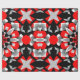Slående mandalainspirerad konst som visar ett symmetriskt geometriskt mönster i djärva röda, svarta och grå nyanser, vilket skapar en modern och dynamisk abstrakt design.