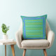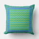 En Dekorativ kudde eller Cushion med en 'Blue Måne mix'n'match mönster av Chevrons och Polka dots i Dazzling Blue, Neon Grönt, Turcos och Emerald Grönt. En del av Posh & Painterly 'Blue Måne Samling; från en handmålad papper kollageutformning av Judy Adamson.
