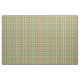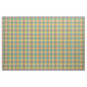 Tyg med en ljus gult, en orange och en grön pläd för seafoam, med blått- och vitbrytningar. Plaidwerx ett original- mönster i modebransch som tenderar färger.