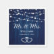 Dekorera din marina blå bröllopsfest med den romantiske mr och bröllop pappra blöjor som innehåller sinsemellan mot en rustik träbakgrund som är försedd med elegant blommigt snöre och sträng ljus.