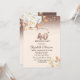 En modern, chic och glamourös inbjudan med en elegant guldtacka, strängljus, glitter bokeh ombre och blommor.