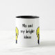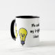 Fick en ljus idé? Visa den med detta roliga lightbulbmotiv. Något att säga för anpassademuggslogan jag och min ljusa idéer" men du kan ändra det till ett namn eller en slogan av ditt primat.