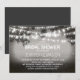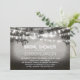 Vintage Rustic inbjudningskort för möhippa med band av ljus på grenar i det gamla träd och romantiska blommor fält på en natt. Svartvita inbjudningar till utomhus party eller möhippa i en lada. Kontakta mig om du behöver hjälp med anpassning eller om du behöver hjälp med en begäran från anpassningsbar färg.