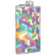 Öka färgen och personligheten med denna moderna geometriska flaska, sprängd av livfulla nyanser och samtida stil. Med ett dynamiskt mönster i olika djärva färger – tänk rosa, elektrisk blå, djärv grön, solskensgul och mer – är denna flaska gjord för att sticka ut. Det anpassningsbara namnvalet lägger till en personlig touch, vilket gör den till en rolig och meningsfull present för födelsedagar, möhippor, kreativa milstolpar eller bara för att.