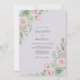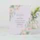 Denna design har en mjuk ljus lila bakgrund prydd med ömtåliga akvarellblommor i nyanser av rosafärgat rosa och salvia grön. Eleganta rosor och ranunculusblommor är parade med luftiga eukalyptusblad och botanisk grönska. Den eteriska estetiken skapar en romantisk atmosfär perfekt för ett sofistikerat vår- eller sommarfirande.