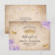Letar du efter unika idéer för "save the date" för ett lila och guld festtema? Skapa din egen sagoprinsessa-inspirerad brevpapper med hjälp av dessa eleganta gör-det-själv-mall för inbjudan. Det vintage blomsterbotaniska akvarellkonstverket av Raphaela Wilson har lilalila rosor med accent i vackert falskt metalliskt guld, en krona och glitterfjärilkonfetti ovanpå en gammal pergamentpappersstruktur. Dessa eleganta "save the date"-kort har text som passar en 16-årsdag, men all text kan anpassas för lila bröllop, en lilalila och guld quinceanera (xv/15 år), en kunglig prinsessas brudshower eller en baby shower för en flicka (bland andra älskade händelser). Vill du överföra fjärilsdesignen till en annan brevpappersmall? Du kan göra det och skapa traditionella magneter, klassiska vykort osv. om du föredrar det. Känn dig fri att också ändra den moderna kalligrafiska typsnittet till den stil du väljer, och kanske lägga till en glamourös bild av Mis Quince Anos på baksidan istället för ett anpassat meddelande. Om du anpassar kortet ytterligare kan du visa en ljusare pergamentalternativ, lila akvarellrosor på baksidan och en mjuk lilagrädient